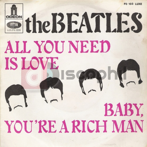 THE BEATLES. ODEON EMI FO 103 LUXE. Titles : - All you need is love - Baby you´re a rich man. SLEEVE AND VINYL IN GOOD CONDITION.