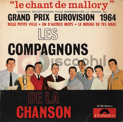 Les Compagnons de la Chanson. Polydor 27 100. Titles : - Le chant de Mallory - Le refuge de tes bras - Belle petite ville - En d´autres mots. SLEEVE AND DISC IN GOOD CONDITION.