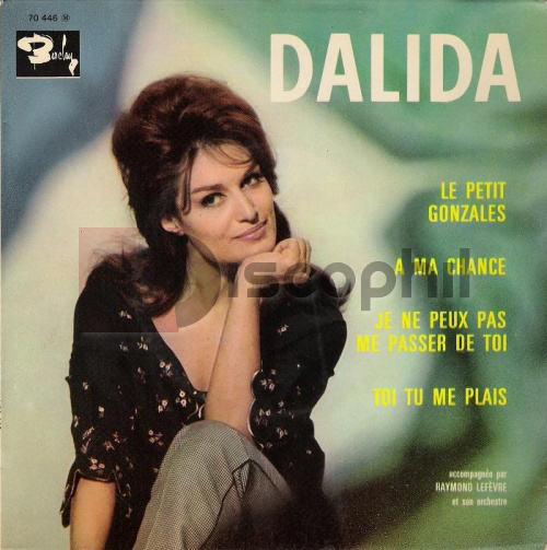 DALIDA. Barclay 70 446. Titles : - Le petit Gonzalez - A ma chance - Je ne peux pas me passer de toi - Toi tu me plais. SLEEVE AND DISC IN GOOD CONDITION.