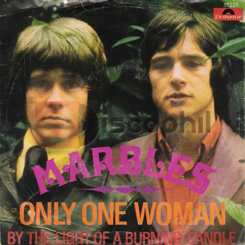THE MARBLES. Polydor 421 404. Titles : - Only one woman - By the light of a burning candle. SLEEVE AND VINYL IN GOOD CONDITION.