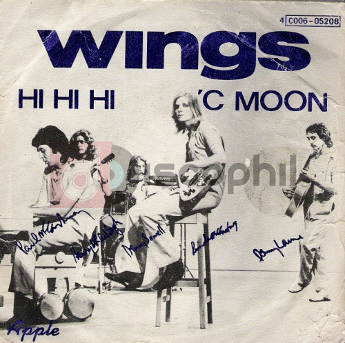 WINGS. Apple 4C006-05208 (Belgium). Titles : - Hi, Hi, Hi - C´ moon. VINYL IN GOOD CONDITION.