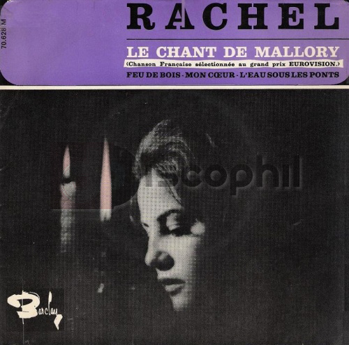 RACHEL. Barclay 70 628. Titles : - Le chant de Mallory (Chanson française sélectionnée au Grand Prix Eurovision 1964) - Feu de bois - Mon cœur - L'eau sous les ponts. SLEEVE AND VINYL IN GOOD CONDITION.