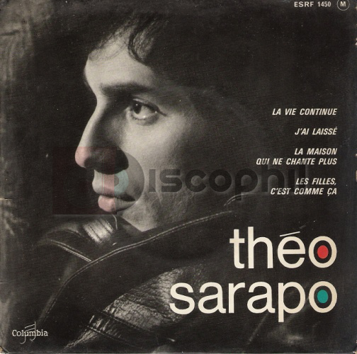 Théo SARAPO. PATHÉ MARCONI ESRF 1450. Titles : - La maison qui ne chante plus - Les filles, c'est comme ça - La vie continue - J'ai laissé. SLEEVE AND VINYL IN GOOD CONDITION.
