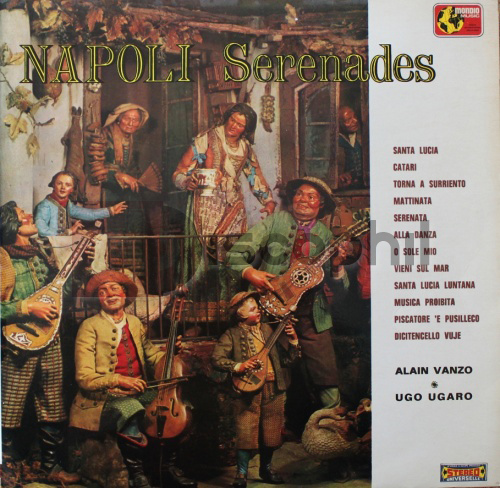 Napoli Serenades. MONDIO MUSIC MM 33. Titres : Alain VANZO : - Santa Lucia - Catari - Torna a surriento - Mattinata - Serenata - Alla danza (craquements minimes). Ugo UGARO : - O sole mio - Vieni sul mar - Santa lucia luntana - Musica proibita - Piscatore' e pusilleco - Dicitencello vuje. SLEEVE AND VINYL IN GOOD CONDITION.